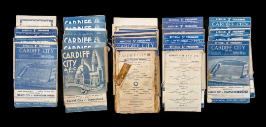 THE FOOTBALL CLUB HOUSE: CARDIFF CITY HOME PROGRAMMES OF SEASONS 1955 - 1960, the earliest Cardiff City vs. Sunderland dated August 20th 1955 and the latest Cardiff City vs. Bristol Rovers dated April 30th 1960, along with two dinner cards for celebration of their Golden Jubilee and promotion to 1st division at The Angel Hotel, Cardiff dated May 30th 1960, approx. 125 programmesProvenance: the collection of the former BBC Wales football commentator Richard Shepherd, please see lot 175 for further detailsComments: good overall but viewing recommended