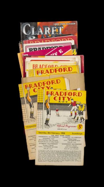THE FOOTBALL CLUB HOUSE: BRADFORD CITY PROGRAMMES OF SEASONS 1957 - 1999, programmes of note include Bradford City vs. Chester dated December 11th 1957, Bradford City vs. Scunthorpe dated February 8th 1958, Bradford City vs. Bury March 10th 1959 and Bradford City vs. Southend United March 28th 1959, approx. 45 programmesProvenance: the collection of the former BBC Wales football commentator Richard Shepherd, please see lot 175 for further detailsComments: good overall but viewing recommended