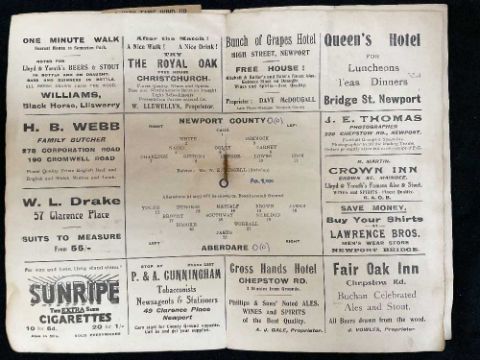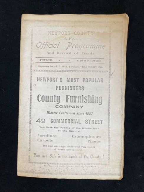 THE FOOTBALL CLUB HOUSE: EARLY NEWPORT COUNTY AFC PROGRAMMES OF SEASONS 1923 - 1928, programmes of note include Newport County vs. Plymouth dated May 5th 1923; Newport County vs. Brighton & Hove dated August 29th 1925; Newport County vs. Exeter City dated October 30th 1926 and Newport County vs. Walsall dated February 18th 1928Provenance: the collection of the former BBC Wales football commentator Richard Shepherd, please see lot 175 for further detailsComments: see photographs Condition Report:The remaining programmes areNewport County vs Brighton (no date)Newport County vs Torquay (no date)Newport County vs The Wolves April 30th 1925Newport County vs Swindon (no date)Newport County vs Aberdare May 3rd 1924