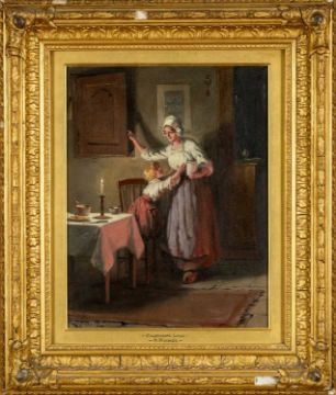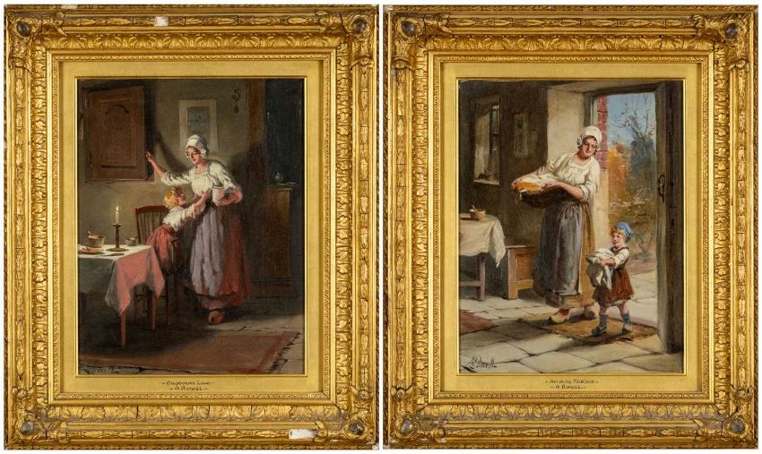ALEXANDER ROSELL (British, 1859-1922) oil on canvas - Helping Mother; Cupboard Love, signed, 32 x 25cms (2)Provenance: private collection GwyneddComments: framed and glazed, ready to hang.