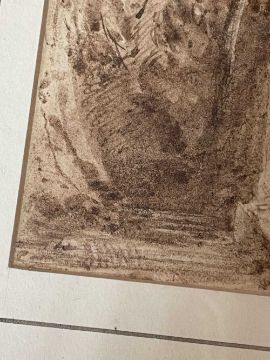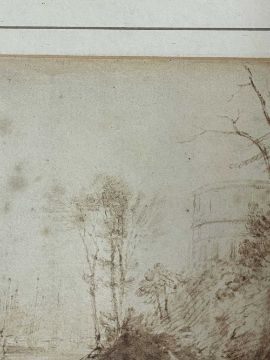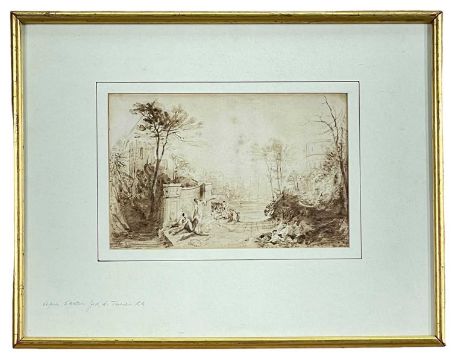ATTR. TO JOSEPH MALLORD WILLIAM TURNER RA (British 1775 - 1851) sepia sketch on paper - Greek scene with figures, possibly Adriana Tivoli, signed with initials, 12 x 19cmsProvenance: private collection LondonComments: framed and glazed