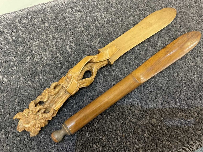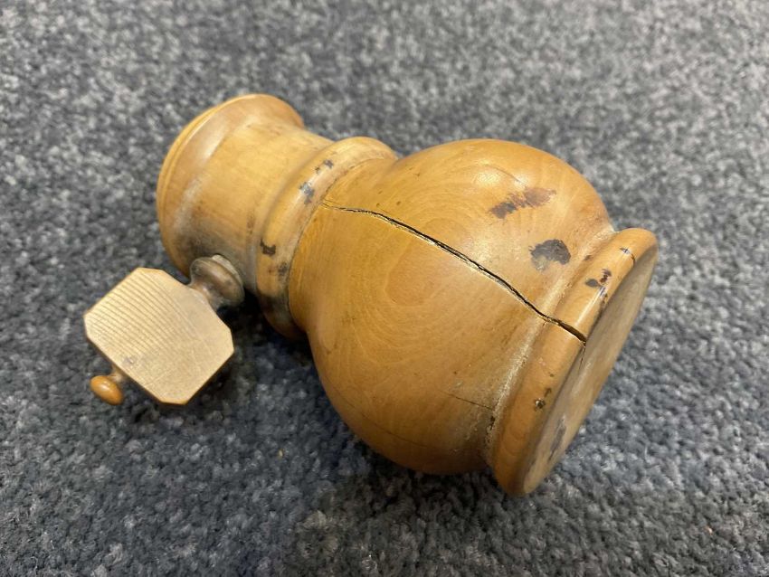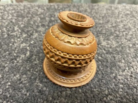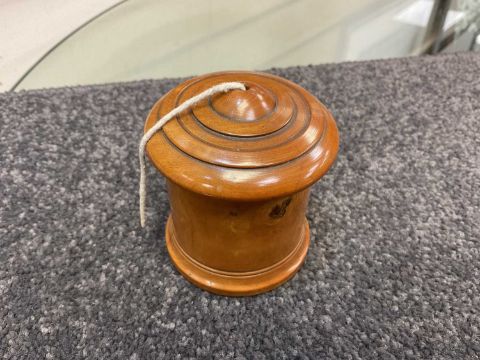 COLLECTION OF WRITING TREEN, including string box, timer, beehive money boxes, pounce mill, pounce sifter, pin box, page knife, ruler and seal, ruler and pencil, paper knife, boxwood etc. (qty)Provenance: the Karl Johansen (1937-2021) Collection, by family descent
