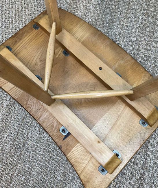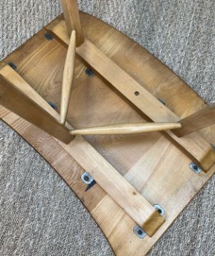 MID-CENTURY ERCOL MODEL 265 END TABLE, blue label, elm top, beech legs and high stretcher, designed as extension to the CC 41 table also listed in this auction, and possibly to later 382 & 383 plank tables, and can also be used as a stand alone serving or writing table, 71 (h) x 45 (w) x 69cms (d)Provenance: purchased by the consignees parents in the late 50's early 60's and remained in family ownership sinceComments: original unrestored condition, no significant damage or wear