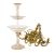 DUTCH STYLE SIX-BRANCH BRASS CEILING LIGHT, candle sconces re-fitted with light sockets, 48cms (diam.), and a large Bohemian glass 3-tiered table centrepiece, with enamelled convolvulus and gilt rims, 56cms (h) (2)Provenance: private collection Vale of GlamorganComments: light - untested, decorative ornament therefore, glass - crack to one dish, chip to other, decoration worn.