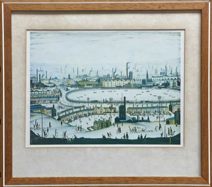 AFTER L.S. LOWRY, seven colour prints - including The Organ Grinder, The Pond, etc., largest 27 x 50.5cms (7)Provenance: private collection GwentComment: famed and glazed, all unsigned/no blind stamps.