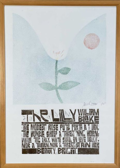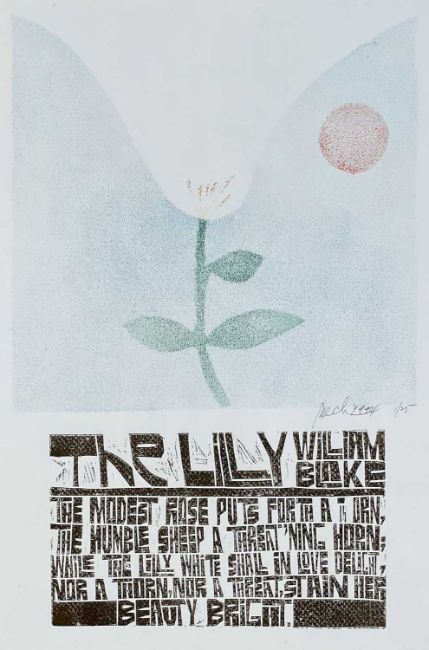 ‡ PAUL PETER PIECH (American, lived / worked Wales 1920-1996) four colour limited edition (1/25) woodcut print - poem by William Blake 'The Lily', fully signed and dated 1994, 63 x 44cmsProvenance: private collection NetherlandsComments: framed, glazed