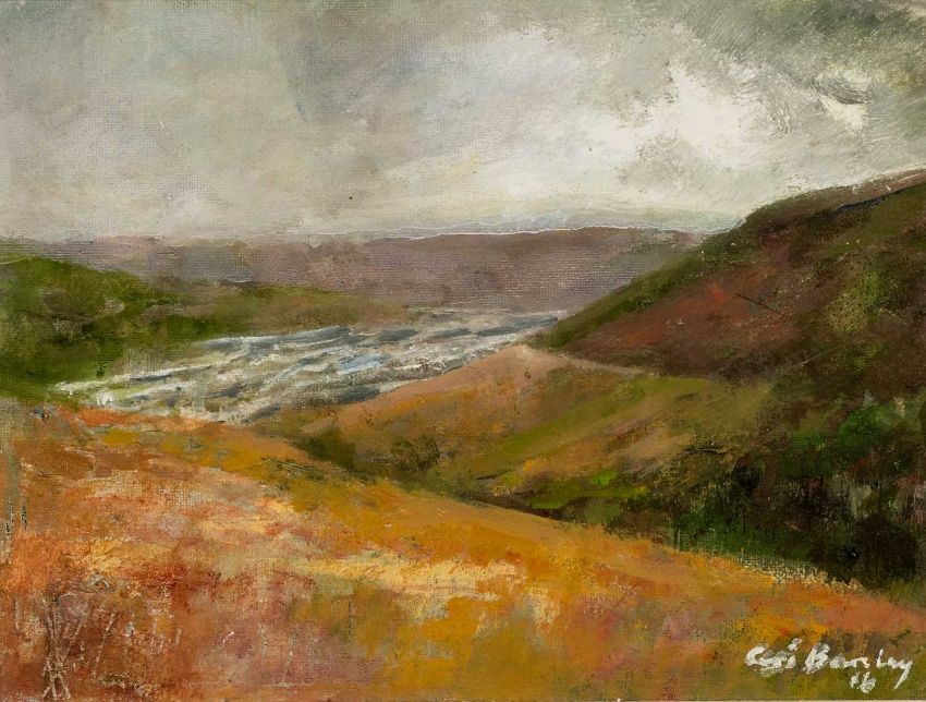 CERI BARCLAY (Welsh b. 1937) oil on canvas - three paintings entitled verso, 'Looking Towards Cwmparc', signed and dated '16, 22 x 29.5cms, another entitled verso, 'Blaencwm', signed and dated '12, 29 x 24.5cms and another entitled verso, 'Mynydd y Cymmer, Rhondda Valley', signed and dated '19, 29 x 39cmsProvenance: from family of the artist, private collection South WalesComments: all three framed