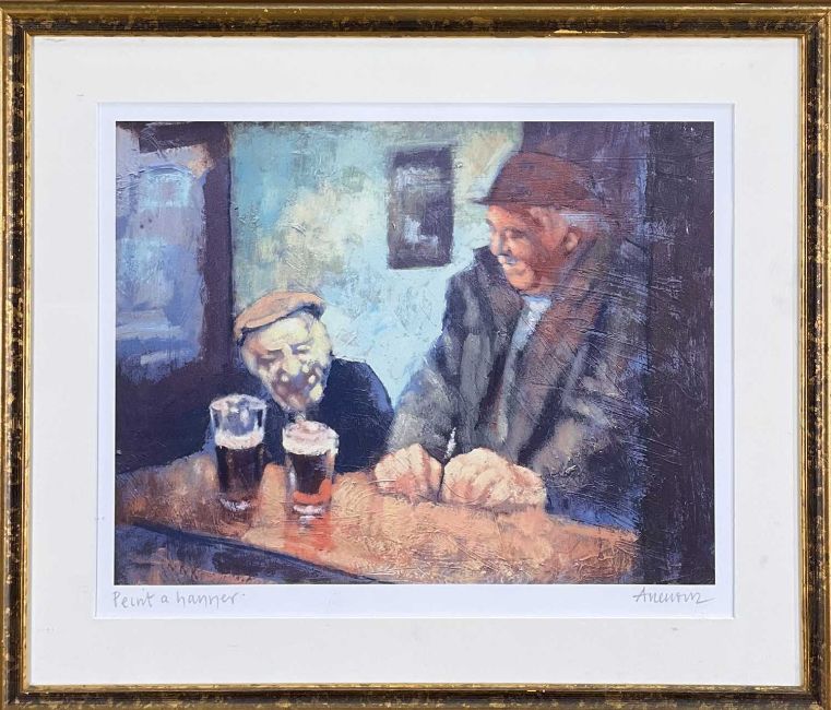 ‡ ANEURIN JONES (Welsh 1930-2017) colour print - entitled 'Peint a Hanner', signed in pencil, 30 x 39cmsProvenance: private collection ConwyComments: framed and glazed