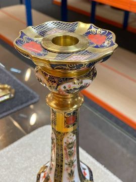 PAIR OF ROYAL CROWN DERBY '1128' PATTERN IMARI CANDLESTICKS, lavishly decorated in typical colours, 26.8cms (h) (2)Provenance: consigned from West Wales