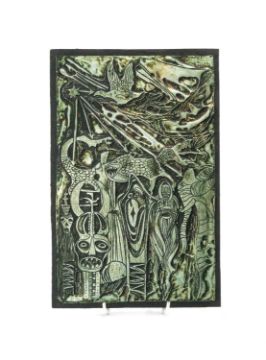 BRUCE ONOBRAKPEYA (Nigerian, b. 1932) metal foil relief - Tortuous Ascent, signed, numbered (4/30) and dated 1980, 31 x 20cms, mounted on plywood.Provenance: purchased in Nigeria c. 1980, private collection Bridgend County Borough.Auctioneer's Note: Onobrakpeya is a celebrated printmaker and sculptor born into the Urhobo people in Delta State, southern Nigeria. With a scholarship he studied art and education at the Nigerian College of Art, Science, and Technology in Zaria. Onobrakpeya is a founding member of the Zaria Art Society, which aimed at celebrating and promoting indigenous culture, and to decolonise the visual arts in Nigeria. He has said that while college gave him technical skills, it was the Zaria Arts Society that shaped his perspectives as an artist.Comments: good overall, mounted on panel.