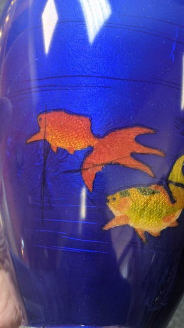 THREE EAST ASIAN ORNAMENTS comprising Japanese cloisonné vase decorated with goldfish, 24cms (h), famille rose model of Lu Dongbin seated on his tiger vehicle, 27cms (h), and modern tiger decorated jar (3)Provenance: private collection SwanseaComments: cloisonne vase with star cracks and other minor cracks and surface scratches.