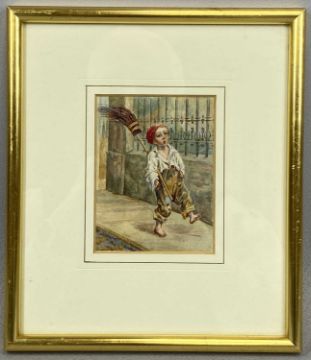 JOHN SYER (19th Century Bristol School) pen and watercolour - landscape, inscription verso 'From the Collection of Edward Hart (Victorian Albert Museum)', 6 x 8cms, and watercolour - young Victorian chimney sweep, 10 x 8cms (2)Provenance: private collection DenbighshireComments: framed and glazed