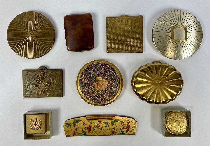 ASSORTED COSTUME JEWELLERY comprising brooches, necklaces, and collectables including atomisers, compacts, etc.Provenance: private collection Gwynedd
