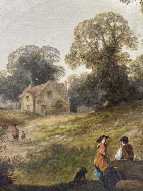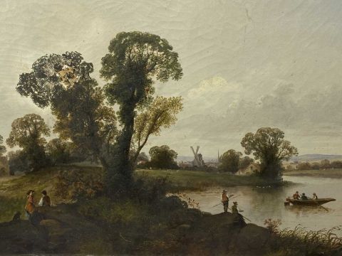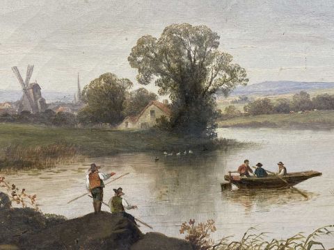 UNKNOWN 19TH CENTURY oil on canvas - extensive lake landscape with figures in foreground, unsigned, 61 x 107cmsProvenance: private collection ConwyComments: framed