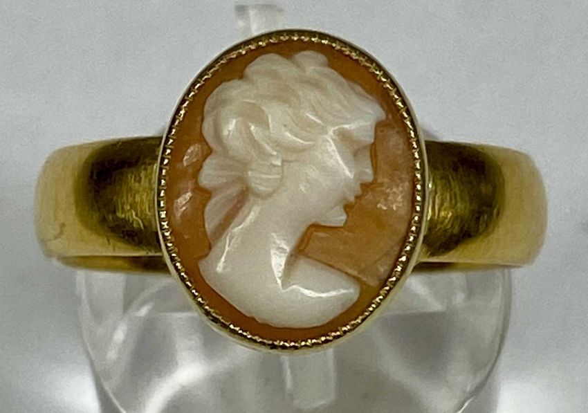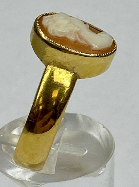 22CT GOLD CAMEO PORTRAIT RING, size R/S, 5.8gmsProvenance: private collection Conwy