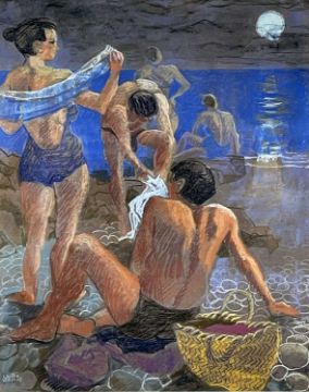‡ CLAUDIA WILLIAMS (b.1933) pastel - entitled verso, 'After the Moonlight Swim' on Martin Tinney Gallery label, fully signed, dated verso 2002, 60 x 48cmsProvenance: private collection DorsetComments: framed, glazed