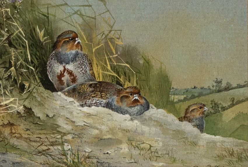 ‡ DAVID KERR (b.1952) watercolour - grey partridges, signed, 6 x 8cmsProvenance: private collection ConwyComments: framed, glazed