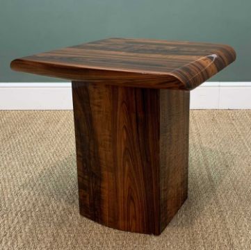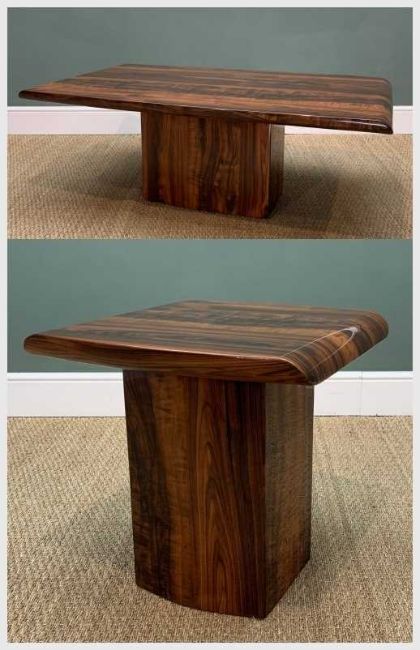 CONTEMPORARY HIGH GLOSS WOOD EFFECT 'MARBLE' COFFEE & SIDE TABLE BY ALFRANK DESIGNS, heavy tables which appear to be constructed from marble, wrapped with wood effect & coated in high gloss resin/lacquer, produced by Dublin based Alfrank Designs Limited and retailed by Arthur Llewellyn Jenkins, coffee table, 48 (h) x 132 (w) x 76cms (d), side table, 56 (h) x 57 (w) x 55cms (d) (2)Provenance: private collection Vale of GlamorganComments: minor scratches, both tops lift from base for easy transportation
