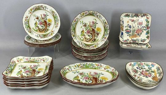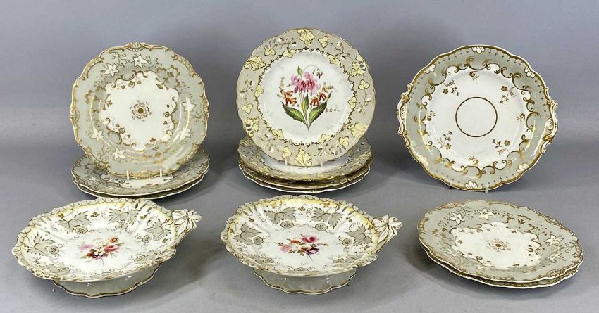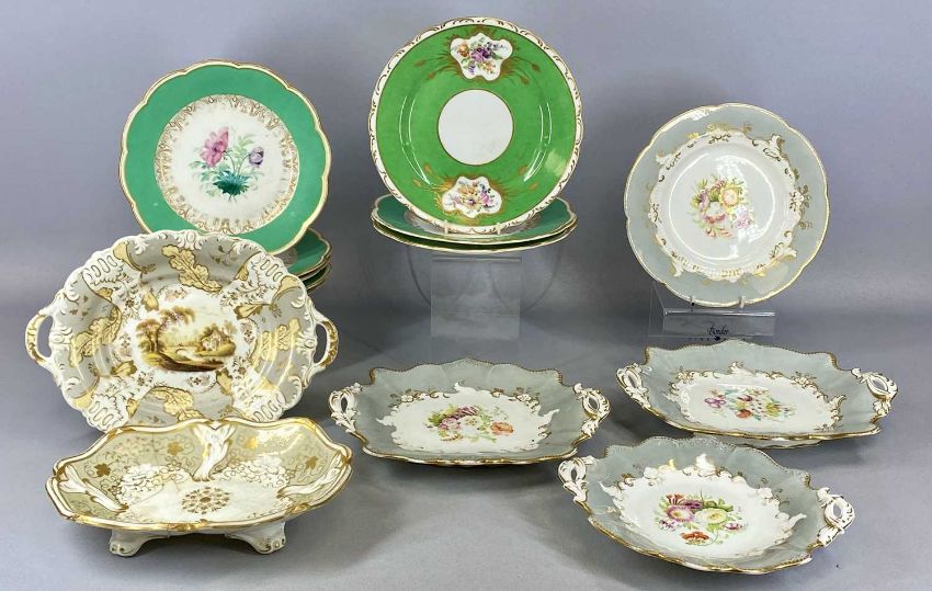 ASSORTED TABLEWARE, 19th century and later, including Spode for Waring & Gillow Ltd. dessert set with pheasant pattern, 20 pieces, various English porcelain plates with hand painted floral decoration, dessert service including large comport with gilded decoration etc.Provenance: The Cornelia Bayley Collection from the historic Welsh Jacobean house, Plas Teg, Flintshire. Further auctions to follow including Plas Teg Principal Interiors, further details on this important Jacobean house and its clearance Welsh House Clearance of a Generation — Rogers Jones Co