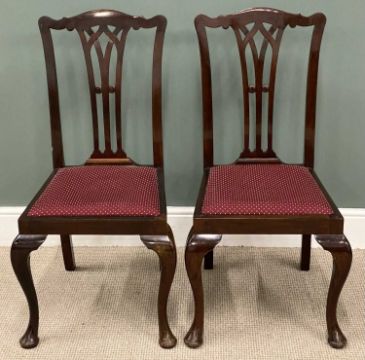 EXCELLENT ANTIQUE MAHOGANY WIND-OUT DINING TABLE on carved cabriole supports, 73 (h) x 180 (w) x 105cms (d), and set of six mahogany splat back dining chairs, 103 (h) x 55 (w) x 39cms (d)Provenance: private collection Ynys Môn