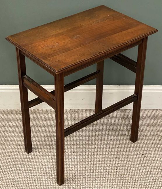 VINTAGE UPHOLSTERED FOOTSTOOL, 36 (h) x 61 (w) x 61cms (d), a turned column standard lamp and a rectangular side table, 67 (h) x 58 (w) x 38cms (d)Provenance: private collection Flintshire