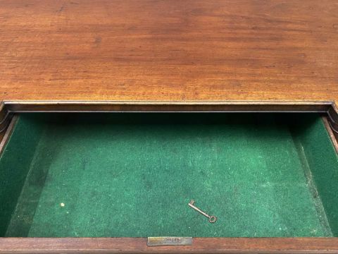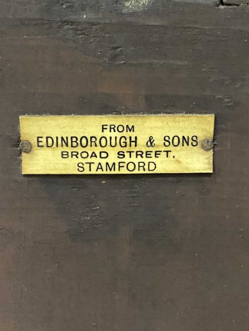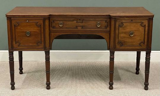 VICTORIAN MAHOGANY INVERTED BREAKFRONT SIDEBOARD with brass ring handles, labelled 'Edinborough & Sons' (Lincolnshire), 92 (h) x 167 (w) x 72cms (d)Provenance: private collection Conwy