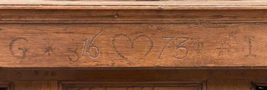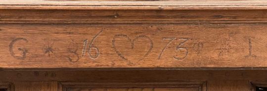'1673' OAK DEUDDARN with two base cupboard doors, 150 (h) x 142 (w) x 55cms (d) Provenance: private collection Conwy