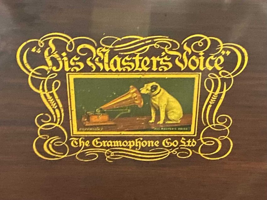 HMV GRAMOPHONE CABINET having compartmented interior, winder and accessories, 115 (h) x 58 (w) x 58cms (d)Provenance: deceased estate Denbighshire
