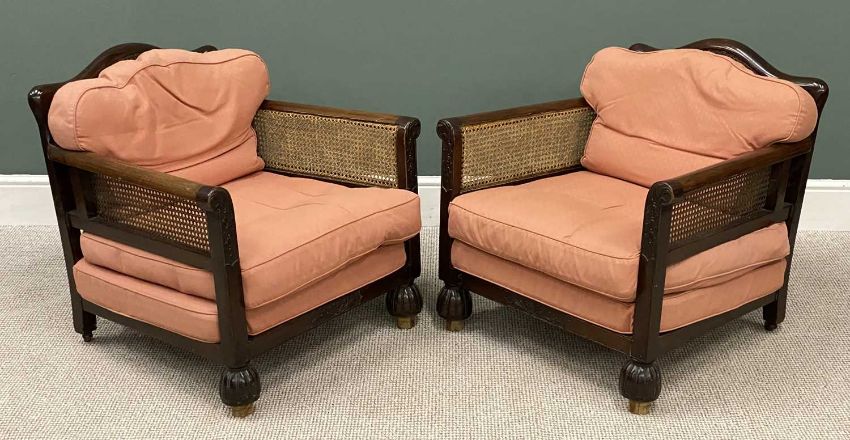 AN EDWARDIAN BERGERE SUITE comprising two-seater sofa, 75 (h) x 147 (w) x 71cms (d) and two armchairs, 73 (h) x 74 (w) x 71cms (d), with carved detail, a fine exampleProvenance: private collection Flintshire