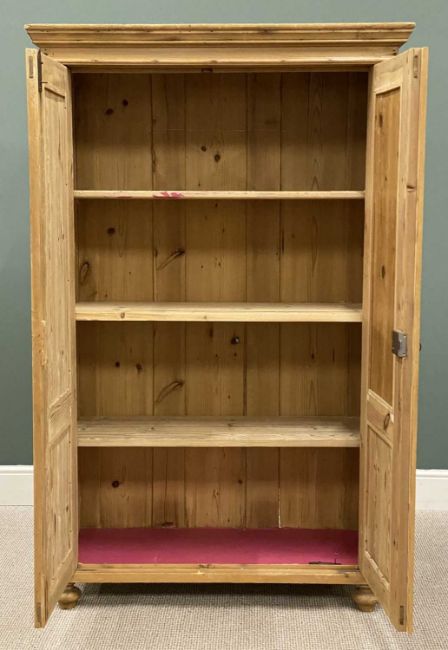 A GOOD PINE TWO DOOR WARDROBE having a shelved interior, 180 (h) x 113 (w) x 54cms (d)Provenance: private collection Anglesey