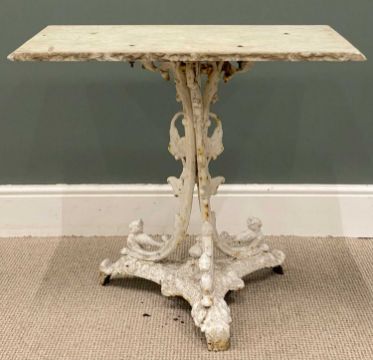 19TH CENTURY COALBROOKDALE STYLE TABLE, triform cast iron pedestal base with marble top, 72 (h) x 77 (w) x 47cms (d)Provenance: private collection Denbighshire