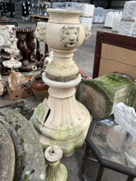 PAINTED STONEWARE FOUNTAIN lion masks on fluted base, 146cms highProvenance: The Cornelia Bayley Collection from Plas Teg, an important Jacobean house in Flintshire, North Wales Plas Teg: Once in a Generation Welsh House Clearance — Rogers Jones CoNote: the auction lots are contained in a warehouse near Wrexham. Viewing can be arranged by appointment by calling Richard Hughes on 07593 181017. Purchased lots require collection by appointment once invoices are settled and strictly within ten days (maximum) from the auction date. Purchases which are not collected by this time will incur a charge of £50 per item per day. Please note that most HGV vehicles can enter the warehouse for convenient collection, but we do not offer assistance for heavy and large objects, please be prepared.