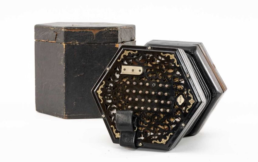 THE MUSIC CLUB HOUSE: LACHENAL & CO. 56 BUTTON CONCERTINA, serial no. 50738, in hexagonal caseProvenance: private collection Anglesey