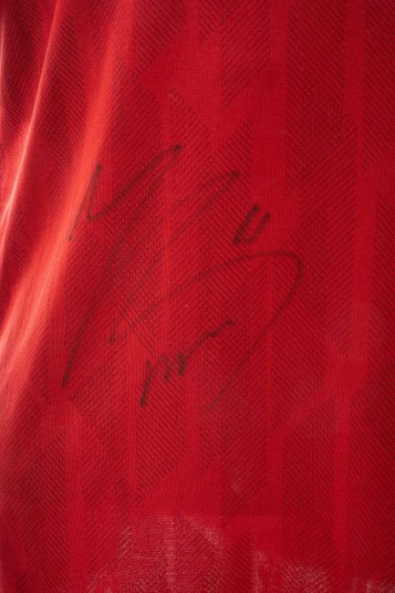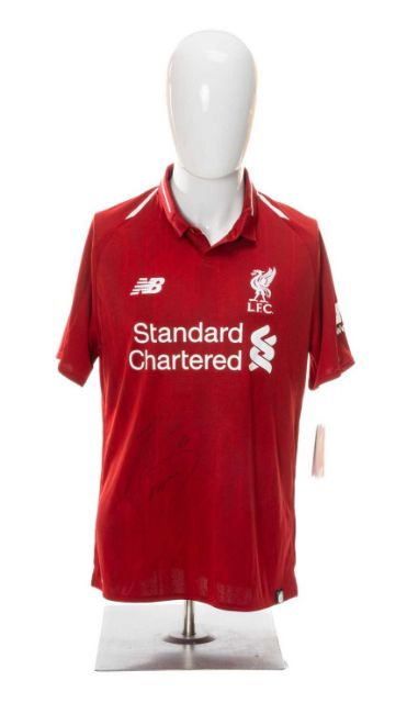 THE FOOTBALL CLUB HOUSE: SIGNED MOHAMED SALAH LIVERPOOL FC HOME SHIRT, New Balance shirt, size M, signed to front chest underneath the Standard Chartered advertisingProvenance: private collection Neath Port Talbot, promotional shirt for advertising campaign, obtained by vendor whilst working for PepsiCoComments: as new