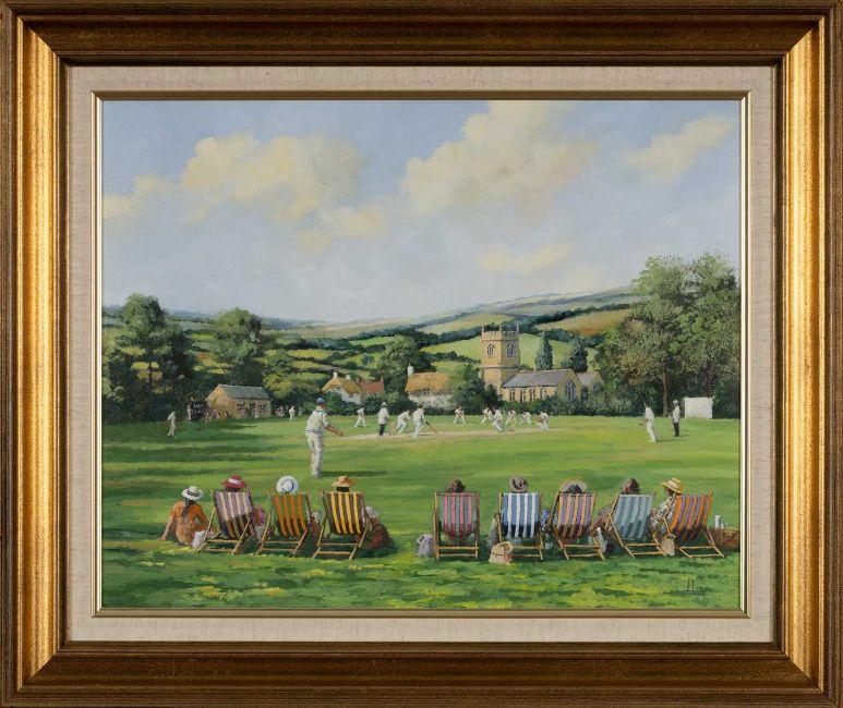 THE CRICKET CLUB HOUSE: ALAN KING oil on canvas - entitled 'Cricket on the Village Green', signed to bottom right corner and verso, dated 1996, together with certificate of authenticity, 39.5 x 49.5cmsProvenance: private collection BridgendComments: framed