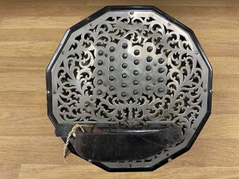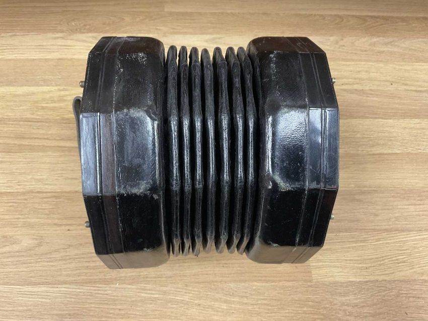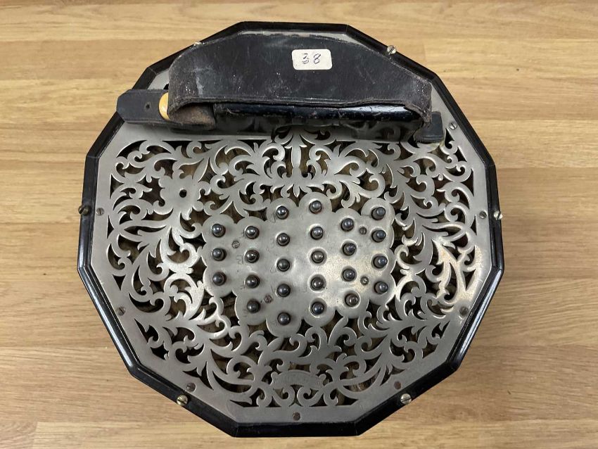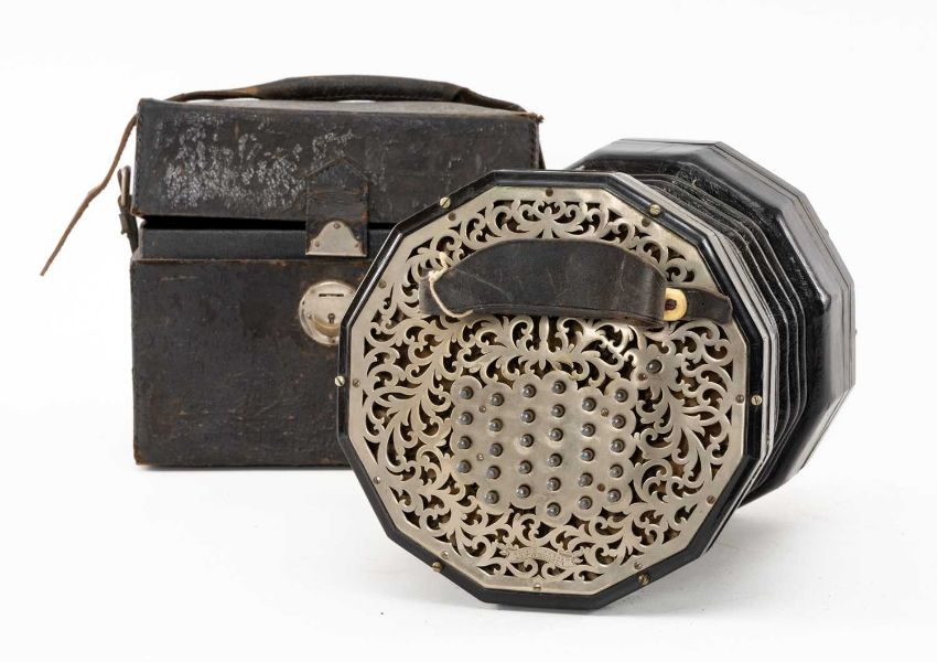 THE MUSIC CLUB HOUSE: LACHENAL & CO. 56 BUTTON CONCERTINA, metal ends, stamped makers mark, in leather case with 'Lachenal & Co.' labelProvenance: private collection Anglesey