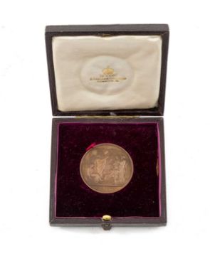 THE EXPLORER CLUB HOUSE: David Livingstone Centenary copper medallion, 1913, by Allan Wyon, obv: relief bust of Livingstone, rev: St Paul with attendants before an altar, 43mms, in original gilt tooled Wyon case of issue.Provenance: consigned to benefit charityComments: surface tarnishing to obverse