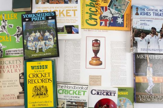 THE CRICKET CLUB HOUSE: COLLECTION OF CRICKETING PUBLICATIONS, including limited edition (378/500) portfolio book 'The Birth of the Ashes', with replica material from the museum at Lord's, 'The Complete Encyclopaedia of Cricket', 'The Official MCC Ashes Treasures', 'Cricket's Greatest', 'Barry Norman's Book of Cricket', 'The Cricketers of Vanity Fair', 'The Wisden Book of Cricket Records', Bird (Dickie) 'White Cap and Bails', Brearley (Mike) 'The Phoenix from the Ashes', etc. (qty)Provenance: private collection BridgendComments: good, please see photos