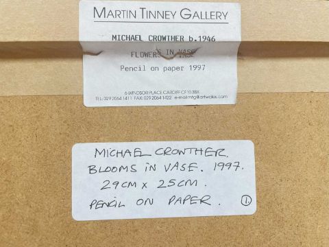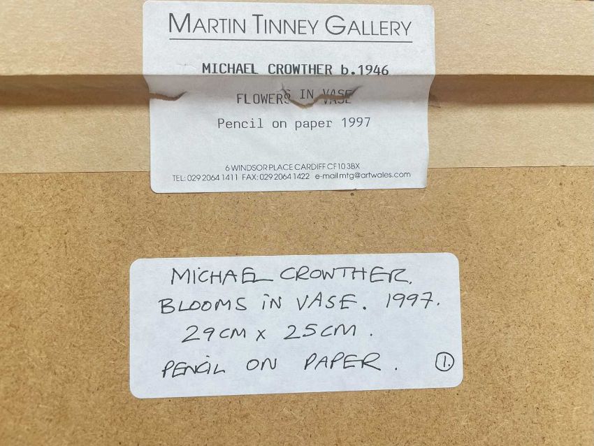 ‡ MICHAEL CROWTHER (b.1946) pencil on paper - entitled verso 'Blooms in Vase' on Martin Tinney Gallery label, signed and dated '97, 29 x 24.5cmsProvenance: private collection Vale of GlamorganComments: framed and glazed
