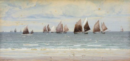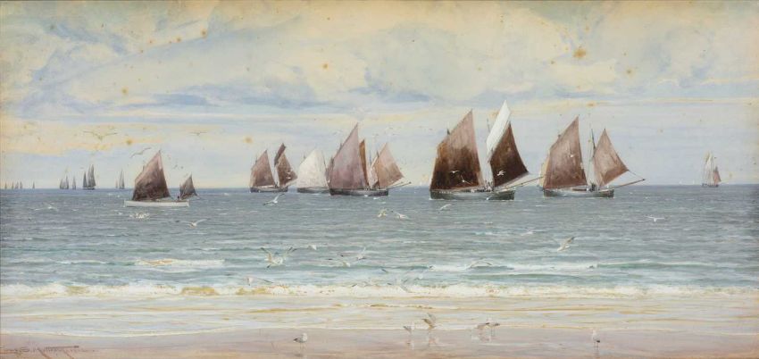 CHARLES MOTTRAM watercolour - 'The Mackerel Season', signed and dated 1902, 60 x 90cmsProvenance: private collection Rhondda Cynon TafComments: framed, glazed, foxed.