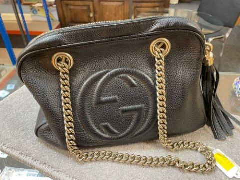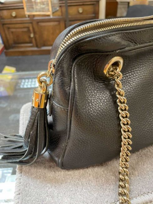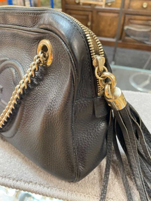 GUCCI SOHO DOUBLE CHAIN LEATHER HANDBAG, plain black, leather tassel, gold hardware, with tag and serial number 308983 520981Provenance: private collection CardiffComments: interior with signs of use but very good overall, inspection advised