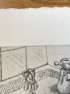 ‡ SUSAN ADAMS (b.1966) limited edition (33/40) etching - entitled 'The Song of the Overflow', print for CASW (Contemporary Art Society for Wales), signed with initials, dated 2001, 22 x 16cmsProvenance: private collection Vale of GlamorganComments: unframed, foxing present