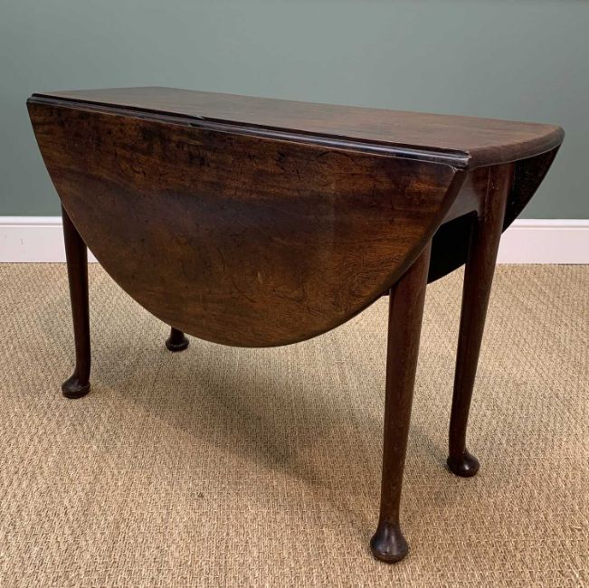 18TH C. STYLE MAHOGANY GATELEG TABLE, 71 (h) x 41/119 (w) x 108cms (d)Provenance; private collection SwanseaComments: stains and bumps, ordinary used condition, inspection advised