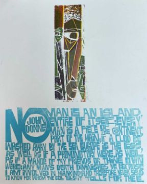 ‡PAUL PETER PIECH (American-Welsh 1920-1996) limited edition (19/25) woodcut print - quote from English poet John Donne, 'No Man is an Island...', signed and dated 1990, 64 x 52cmsProvenance: private collection OxfordshireComments: unframed