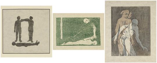 ‡DEBORAH JONES collection of limited edition woodcuts - entitled 'Some Guardian Angel 2' (5/50), 'Unfurling' (3/50), and 'One Third' (3/50), all signed and dated 1991, different sizes, the largest 20 x 16cmsProvenance: private collection Vale of GlamorganComments: mounted, unframed, mounts are dirty