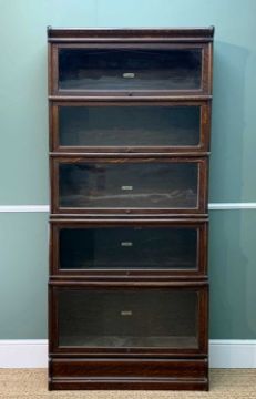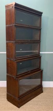 GLOBE WERNICKE FIVE-TIER STAINED OAK WATERFALL BOOKCASE, 191 (h) x 87 (w) x 38cms (d)Provenance: private collection CardiffComments: ordinary used condition, lower tier appears to be missing scissor action 'spring' however function doesn't appear affected