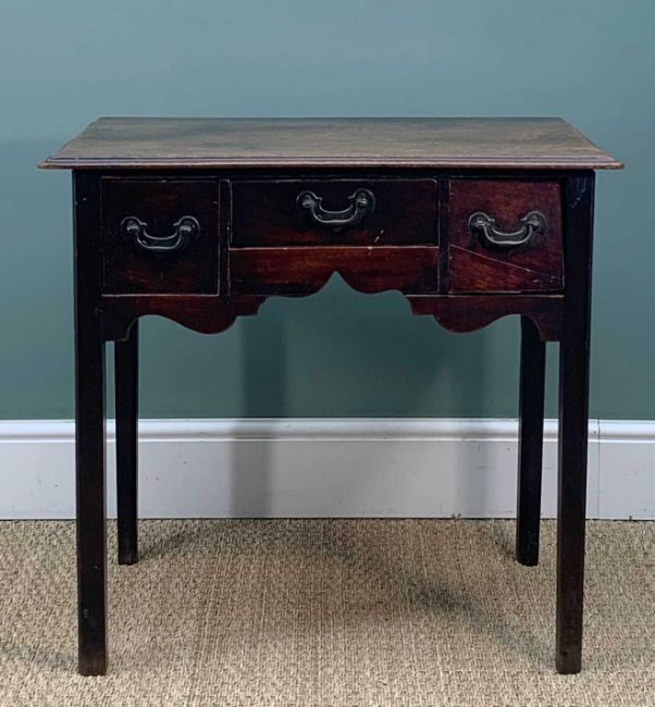 19TH C. MAHOGANY LOWBOY, 71 (h) x 77 (w) 45cms (d), together with 19th C. lead-glazed stained oak hanging corner cupboard, 104 (h) x 67 (w) x 46cms (d) (2)Provenance: private collection Vale of GlamorganComments: corner cupboard: loose moulding, damaged door latch, repaired split, lowboy: general wear, inspection advised
