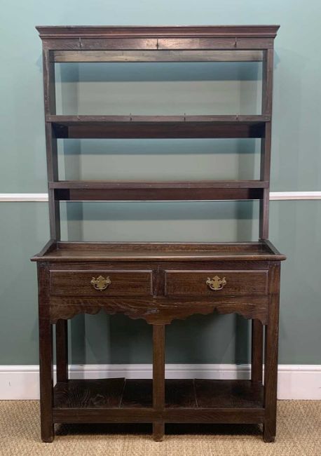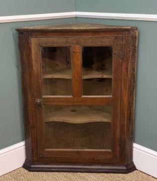 ASSORTED FURNITURE including, two small oak dressers, 163.5 (h) x 97 (w) x 36.6cms (d) & (with three concealed frieze drawers) 163 (h) x 102 (w) x 36.5cms (d) one stained pine glazed corner cupboard, 93 (h) x 70 (w) (3)Provenance: deceased estate NewportComments: worm damage to corner cupboard
