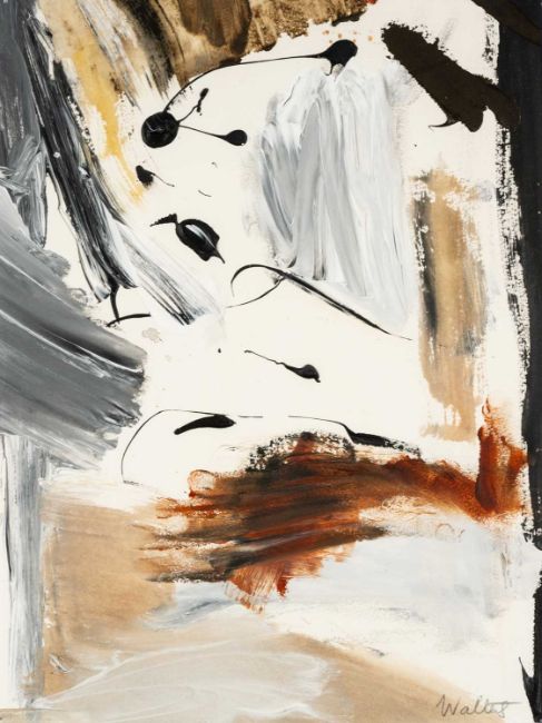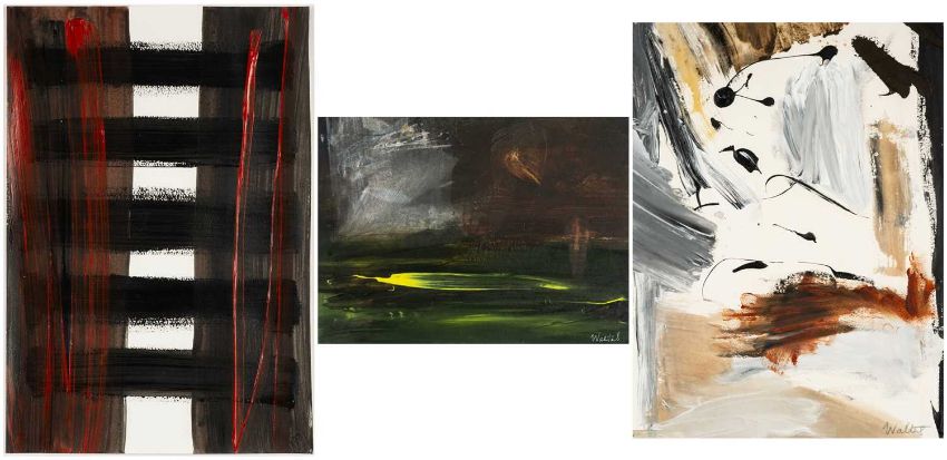 PRUDENCE WALTERS (b.1949) acrylic on paper - entitled verso 'River IV', another signed work and an unsigned abstract (3)Provenance: private collection CarmarthenshireComments: framed, glazed