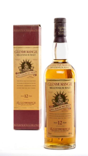 BOXED GLENMORANGIE 12YO MILLENNIUM MALT WHISKY, 70cl, 40% vol.Provenance: private collection Vale of GlamorganComments: excellent fill, foil and labels, box tarnished
